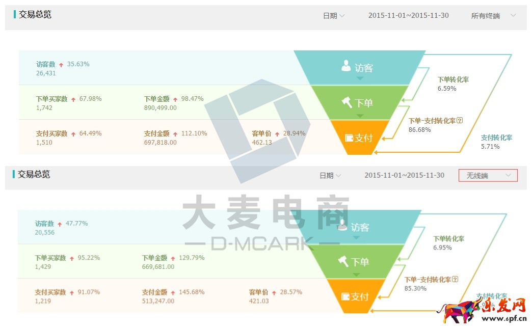 無線端下單的在店鋪的占比為68%,已經是非常重要的部分。除了流量引入以及各種活動部署,無線端應該有更多差異化的調整。