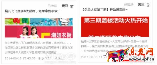 蓋樓有禮、投票選款、成語接龍、搶樓層、拉粉有回饋,這些都是在微淘動態上直接體現的。還有一些第三方的活動插件我們可以加以利用,目的是讓粉絲產生粘性。如下圖,我們可以發起免單活動或蓋樓活動。只要積累了夠一定粉絲,我們就能為店鋪創造流量。