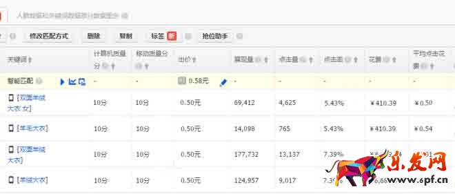 這是我們測試的第一張也是主圖。但是發現點擊率還是不行,這個時候可以參照移動端這個詞的平均點擊率。這個是打開直通車首頁-工具-流量解析-搜索關鍵詞-羊絨大衣-數據透視-可以看到行業平均點擊率都是2.6%了。所以還沒有達標。