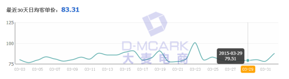 從圖中反饋店鋪的客單價雖然有所波動,但是整體來說還是比較平穩。但是,不要以為這樣就沒事了??蛦蝺r跟寶貝的定價有直接的關系。