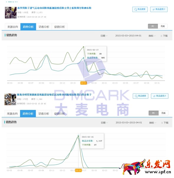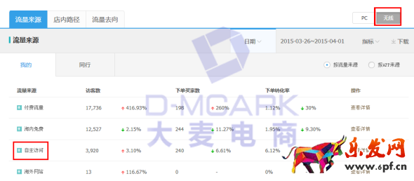 5.分析整體數據時要將PC端和無線端分開進行分析。畢竟兩個數據所產生的數據偏差太大,有的店鋪無線占比高,有的店鋪PC占比高。