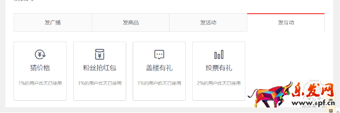 發互動:目前的話有以下四種:猜價格,粉絲搶紅包,蓋樓有禮,投票有禮,像雙十二有店鋪也是做發送蓋樓有獎活動得到的回響相對較高。