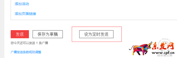 R:微淘有一個定時發送的功能,在發微淘-圖文廣播-發送那里有個定時發送,可以設定自己想發送的時間,設定定時發送后悔保存在廣播草稿那里。