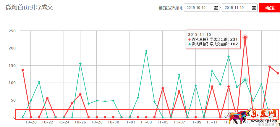 分析:從店鋪接手前的微淘粉絲基礎來看,達到了1w左右,粉絲基礎較好,但從流量角度來看,10.19-11.19期間最高uv也只是達到了100左右,是非常低的,從微淘轉化角度來看,成交雖然幾乎每天都有,但非常偶然,時斷時續??傮w來說微淘方面還是具有一定潛力可以挖掘,同時可以作為店鋪流量引進的另一渠道。