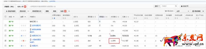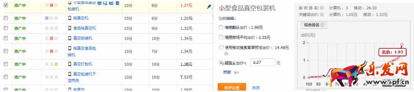 由于我們選擇的關鍵詞權重比較高,所以出價上我們卡到第一位上出價也不會很高。