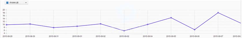 點擊轉化率剛開始時并不高,與前7天的數據對比沒有很明顯的變化,幾乎是持平;不過總體上是有小幅的增長的,這其中的一個原因也是受到了流量波動的影響導致的,總體上是有些波動,后期在通過調整優化,盡量穩定寶貝關鍵詞的展現,以高匹配的長尾詞為主,以提高流量的精準度,從而促進轉化。