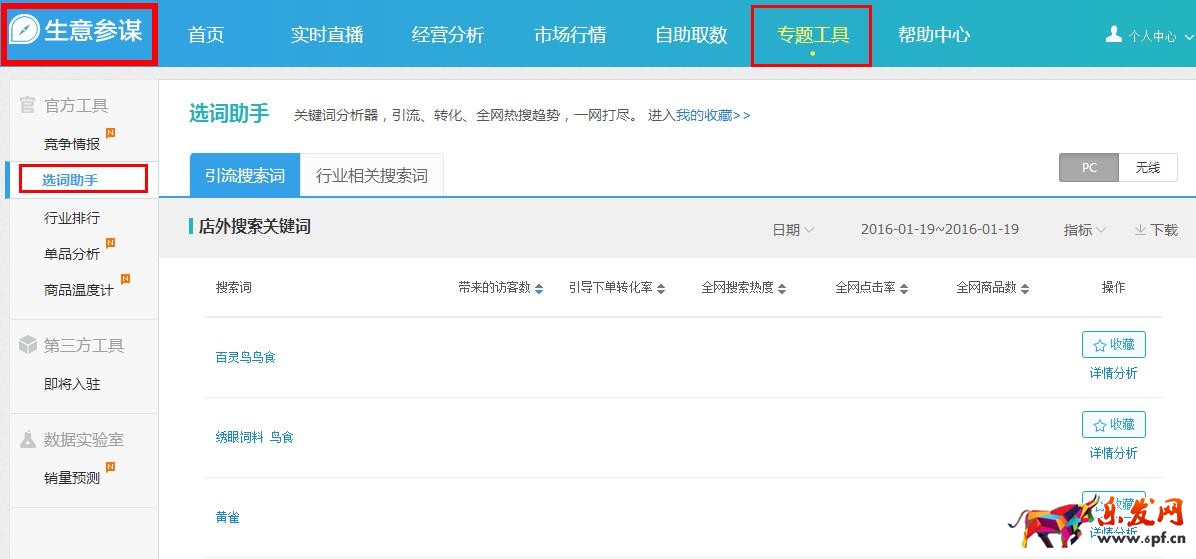 3、生意參謀-專業工具-選詞助手