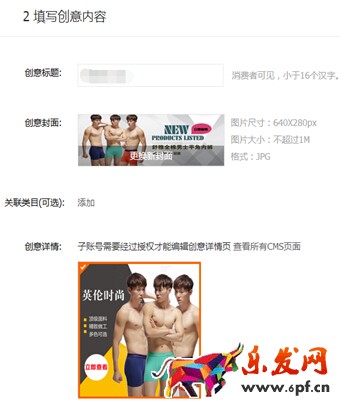 上圖是后臺填寫創意內容的界面,圖片的大小、尺寸還有格式都需要注意。