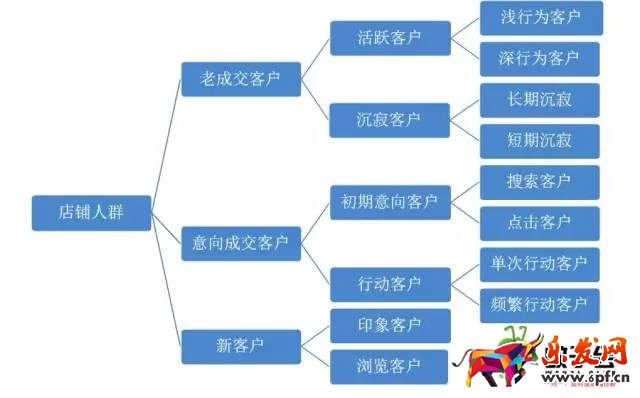 首先我們把店鋪人群分解一下,可以分為老成交客戶、意向成交客戶還有新客戶。人群可以分得很細很細,我們可以隨意選擇圈哪一個類型的顧客。而把這個人群分得那么細,我們就可以很容易的理解人群分割的意義了,首先是我們可以分析沉淀客戶的行動率,訪客行為進行到哪一步轉化率最高。還有我們就可以知道老買家沉寂多久回購率最高一次來判斷哪一些行為人群轉化效率低。