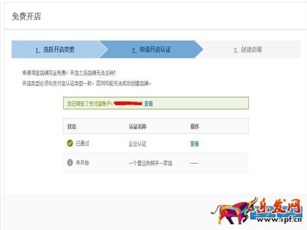 2、查看已綁定的支付寶賬戶是否通過企業認證,如果沒有通過,需要先進行認證。