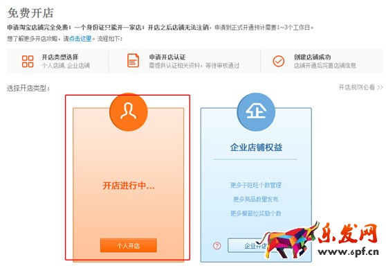 2、進入到開網店的頁面,由于存在個人開網店和企業開網店的差異,所以這里先來說說個人店鋪是怎么做。