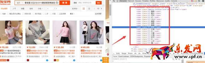 同樣,今天還是以春裝舉例,選擇一個寶貝,搜全標題,鼠標放在標題上面,右鍵點擊“審查元素“