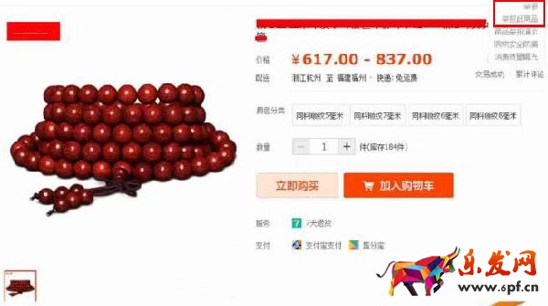 投訴入口1:進入涉及侵權寶貝圖片的店鋪,點擊右上角舉報—舉報此商品,進入如圖2.1所示入口,進入投訴提交頁面。