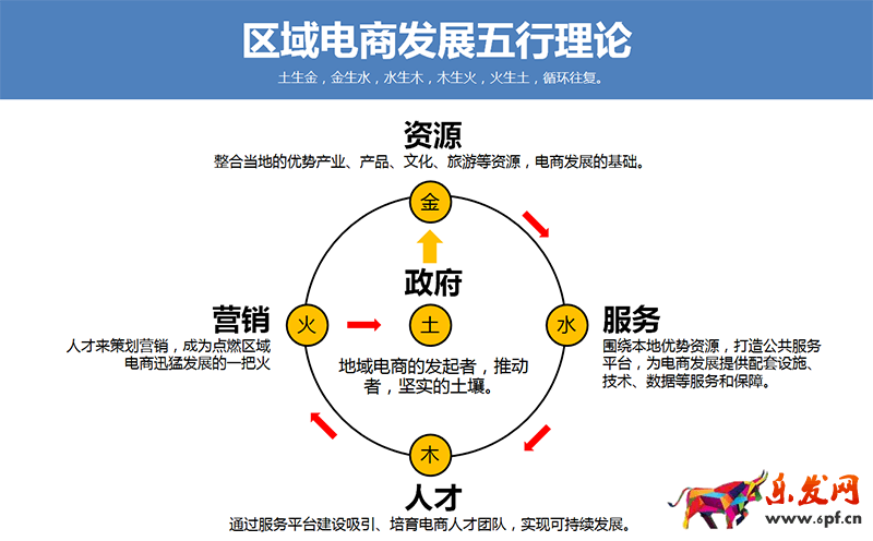 我們不妨用循環相生的五行理論來闡述,這幾個環節環環相扣,互為支持,才能保證縣域電商的發展更加順暢有序。