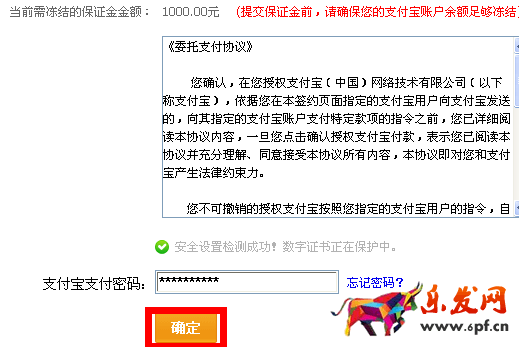 3,閱讀委托支付協議,同意的話就直接通過支付寶繳納保證金,如圖所示