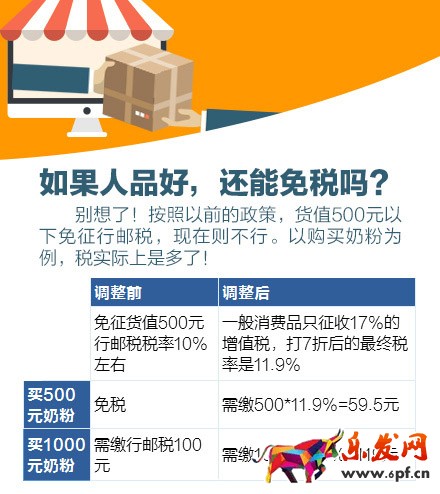 今天起,“海淘”告別免稅時代!!自4月8日起,跨境電商稅收新政正式實施!①食品、保健、母嬰等收取總價11.9%的跨境稅;②買500元奶粉,稅改前免稅,調整后則需繳59.5元。③買1000元香水等高檔化妝品,稅改前行郵稅稅率50%,調整后最終稅率32.9%,稅負減少。新政后,怎樣買更劃算?跟著如何開網店小編一起看下圖,保證你看懂!