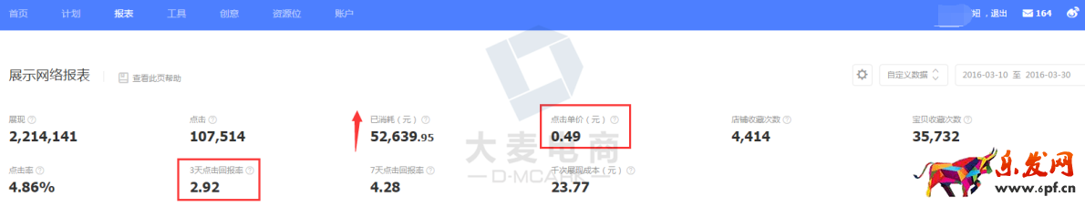 從圖上的信息可明顯看出,在花費提高了86%,而點擊單價卻下降了11%,ROI提升了12% ,而總收藏成交從2.59元下降到1.31元!數據整體效果上升,提升非常明顯!小編不和大家買關子,馬上給介紹鉆石展位專員操作新思路!