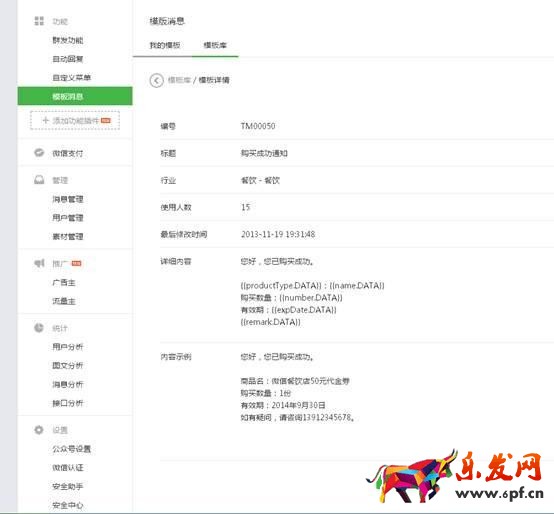 通過以上的三個步驟,就可以開通公眾號模板消息功能,用戶通過相應的操作之后,就會收到微信給你發的詳細信息,充分使用好微信公眾平臺的每個功能,才能將微信運營做的更好。