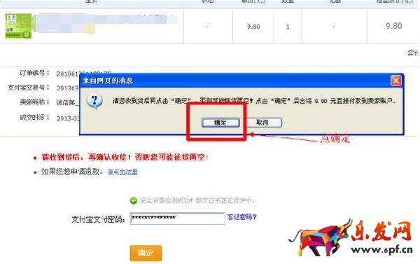 然后再輸入支付包支付密碼截圖,點擊確定,如下與所示: