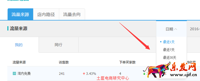 另外是大家要利用好這個功能,這個是我們土匪電商研究中心常用的,因為功能實在非常強大。因為他分日期,我可以把每天的數據記錄,之后對比,另外指標可以選擇,里面我們可以選擇訪客數、新訪客、瀏覽量、人均瀏覽量、收藏人數、加購人數、跳失率、下單金額、下單買家數、下單轉化率、支付金額、支付買家數、支付轉化率。