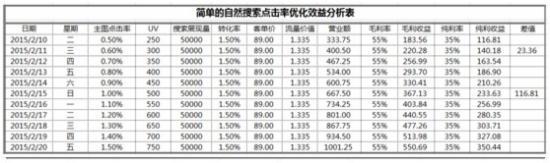 我們先看下表:點擊率盈利分析(以自然搜索主圖點擊率為例);