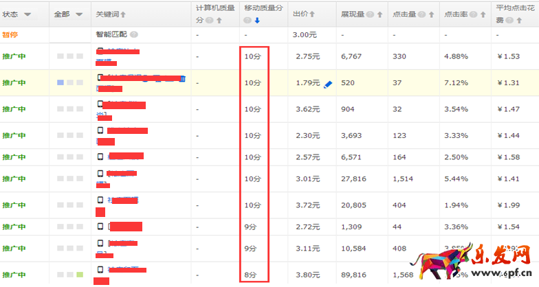 c.關鍵詞質量分逐步上升的時候,添加多一些關鍵詞,考慮部分效果差的詞拉低一些排位,流量方面用新加入關鍵詞進行補充。