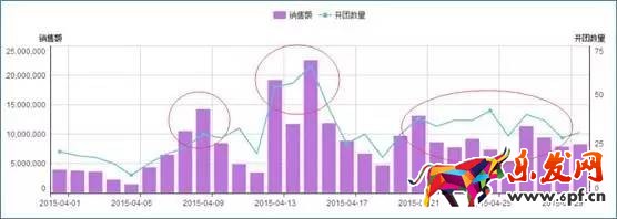 2、下圖是2015年4月全月的聚劃算女裝銷售趨勢: