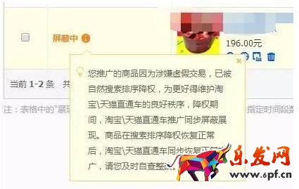 Top4:那些大神說的刷單被抓,能夠用直通車拉回來的說法現已沒用了!!!由于商品虛偽買賣一旦被抓 ,直通車相應商品也會遭屏蔽!!有圖有本相。