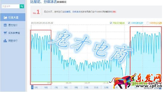 以女士泳衣為例,查看一年的數據,從行業大盤我們可以看出,從2月中旬到7月中旬,泳衣銷量處于平穩高峰,如果想拿到大流量,從開年就應該重點著手準備。其中比基尼、分體泳衣更受喜歡,這類產品應多備款式,為迎接流量高峰做準備。在直通車推廣上也要在流量爆發前期重點推廣養詞,獲得前瞻性,在推廣強流過程中才能具備主動性。