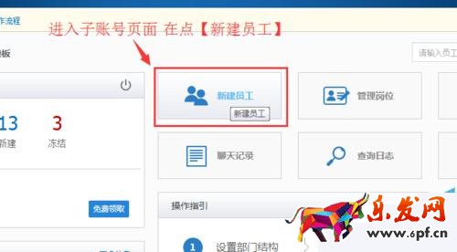 3、進入子賬號頁面后,在點新建員工