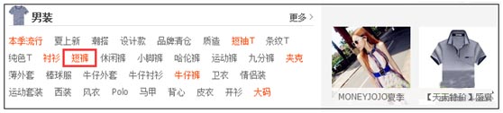 好了,直接說操作方法吧,我們用一個主題市場搜索為例吧!我們就來看男裝市場的“短褲”這個主題,點開,然后看搜索結果。
