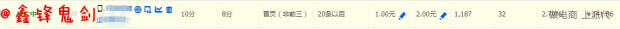 再來看一個關鍵詞,pc端出價1塊多,就能頂到較好位置,但是看手機端出價2快,才只能到20條以后。