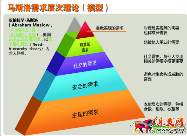 大學的課堂,我學到一個很重要的理論:馬斯洛需求層次理論,他把人的需求層次分級。
