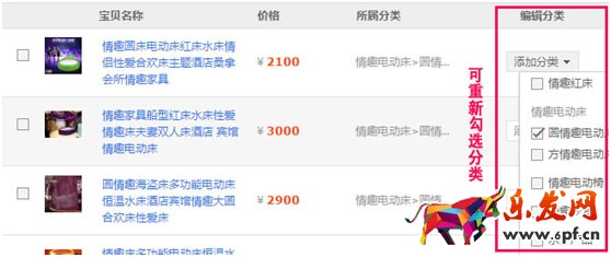5、在編輯分類這塊,也可以重新選擇寶貝的分類歸屬;