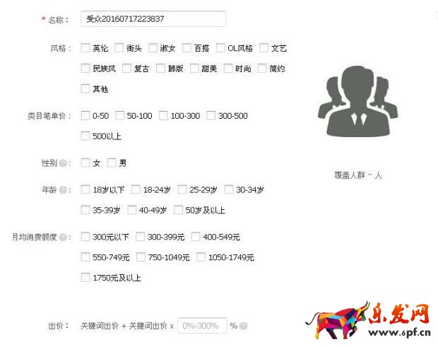 自定義人群標簽維度比較多,有風格、類目筆單價、性別、年齡、月消費額度五個維度,可以在每個維度單獨設置標簽。