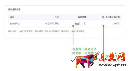 支持設置每日投放預算,顯示預計日最大曝光量。
