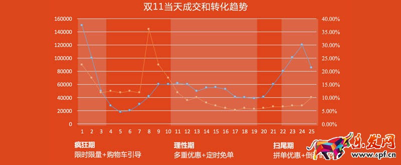 瘋狂轉化的階段,大部分成交來源于加購和收藏,前期的預熱成果就是在這個階段得以驗證,同時也要做好加購收藏的客戶的營銷,在這個黃金點刺激客戶。