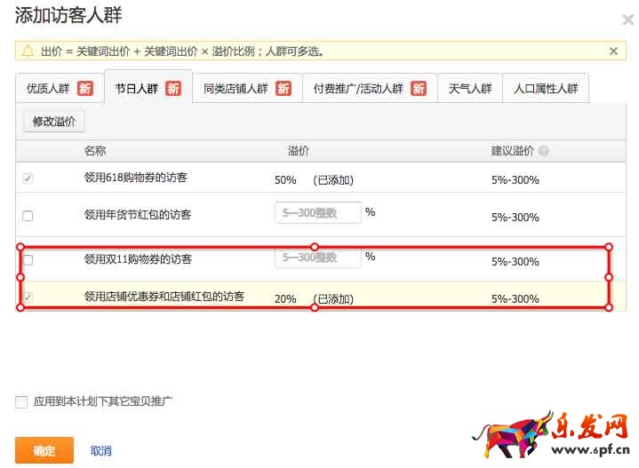 其實優質人群里面的一些資深天貓訪客,折扣偏好人群,高消費人群,高頻次購買人群都是不錯的,但是如果預算不多的情況下,我們重點就投放店鋪相關的優質訪客,以及雙11購物券的人群。