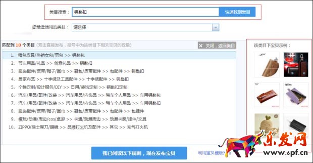 如果有時你不確定自己的寶貝應該選擇哪個類目或者哪個類目才是最優的,可以在發布寶貝第一個界面那,輸入主關鍵詞,點擊快速找到類目,會出來所有適合你的類目,最右邊也有對照的寶貝圖片,選擇最適合你的。