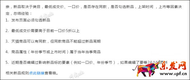 天貓店鋪寶貝新品的一些特殊要求可以見下圖: