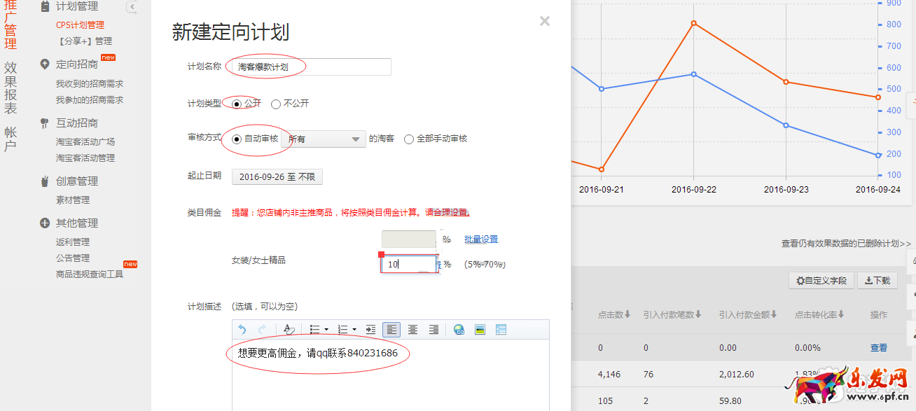 3、定向計劃:針對特定淘寶客 。傭金可自主根據淘客的推廣效果來決定,建議高傭金;