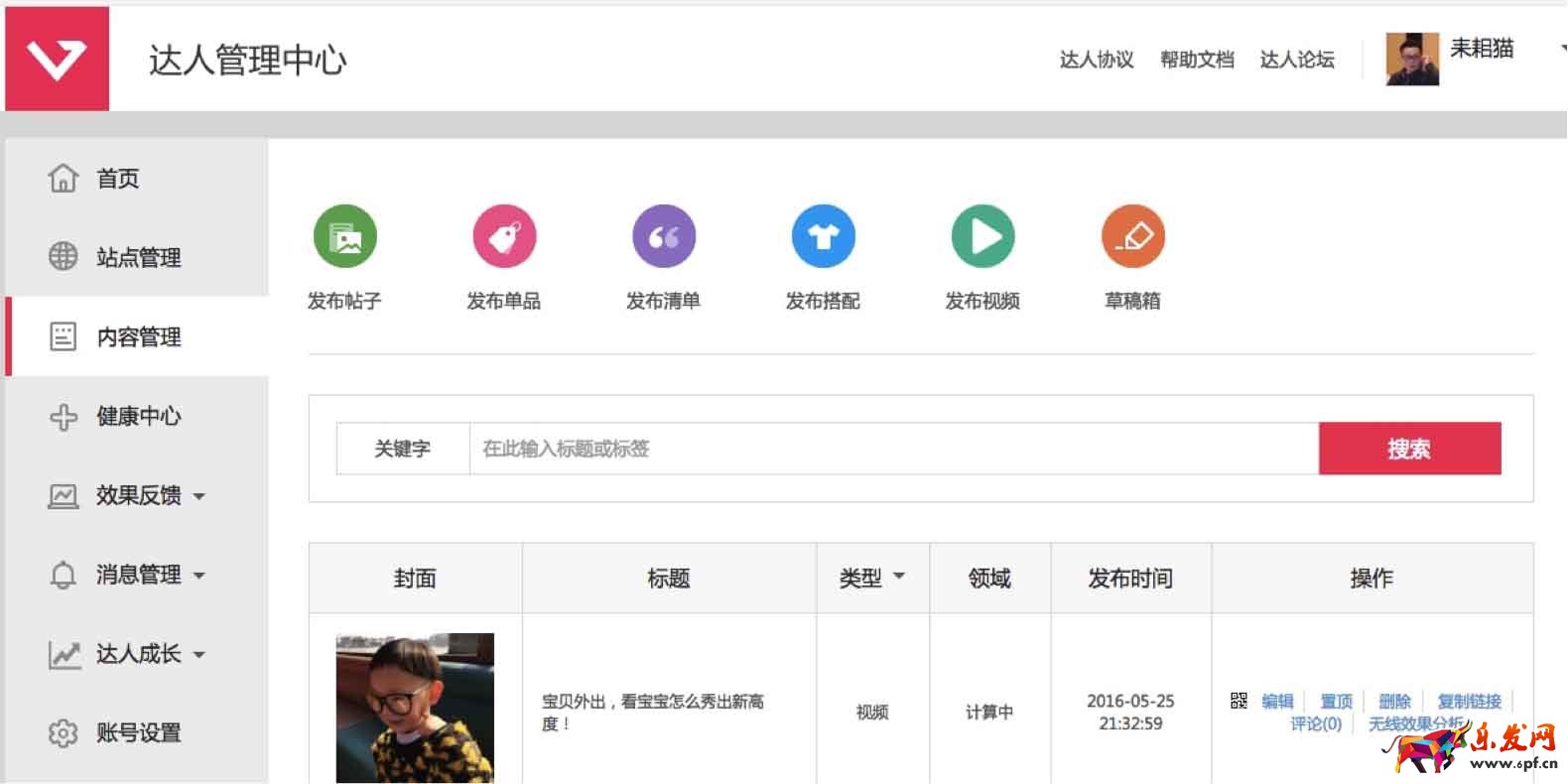 點擊站點管理,看到那個很帥的帥哥嗎,那就是pc站點,當然你的pc站點出現的是達人自己的圖片,點擊“查看站戰點”進去會出現下圖: