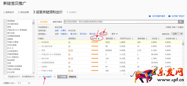 ②選擇3個大詞,出價最低,不要動,其他詞出到行業均價。