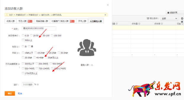 等到計劃上分后,穩定2天,這個時候你需要的就是提高點擊和提高轉化,不是人為操作了哦,人為的在前面已經操作了,現在全部靠自然流量,這個時候你要的就是店鋪后臺的數據,利用【生意參謀】【90天支付金額】和【年齡分布】找出各自前兩名,然后利用直通車【添加訪客人群】添加人群標簽。