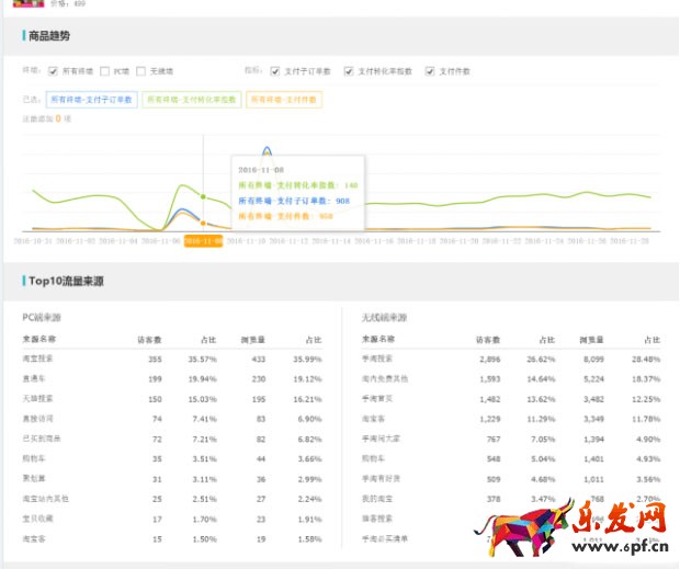 另一方面就是關鍵詞分析,這時候我們要分析的是競品關鍵詞在手淘流量搜索中訪客數、流量量、轉化率等,核心關鍵詞不同的寶貝不建議做為競品參考。三、提升優化無線搜索流量