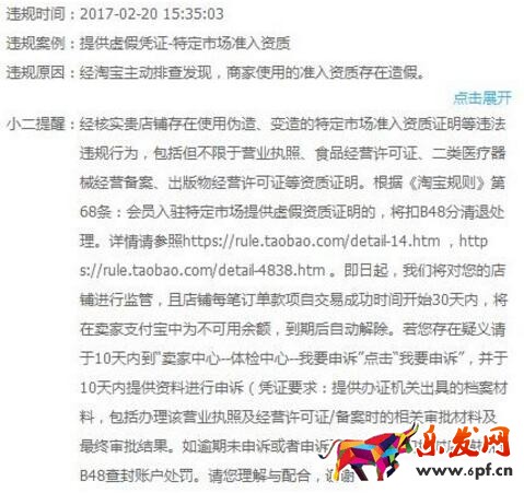 淘寶官方近日發布了《關于提供虛假憑證—特定市場準入資質處置通知》,針對淘寶上個別行業賣家在進行類目準入時提供偽造、變造的資質材料進行相關處罰。對違規賣家,淘寶將進行30日的監管封店處理。