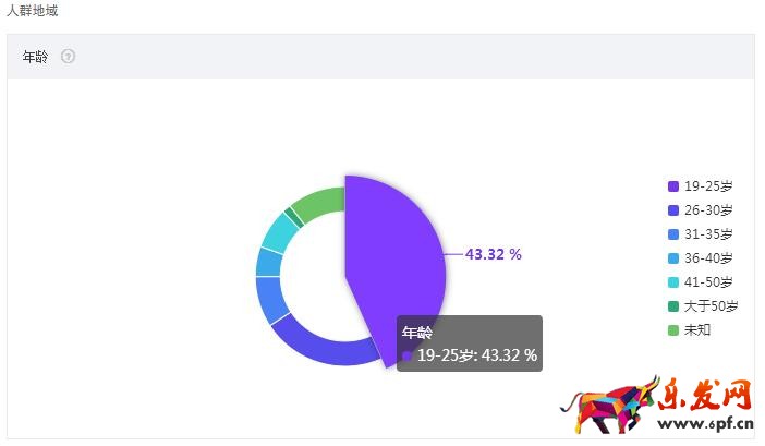 在年齡方面,19-25歲的客戶占比43.32%,年齡屬于青年人群,推廣人群選中時,可以按人群定位年紀定位推廣。