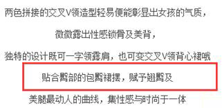 再看詳情頁文案,如果是我,我會把包臀效果寫的更突出,更吸引人,而不僅僅是埋沒在這里。因為你要注意,作為中小賣家來講,你一個產品搞定一個屬性詞就很不容易了。所以,如果你分析完了后,覺得包臀這個詞很不錯,那別猶豫,在你的詳情頁當中一定要不斷的去表現你的連衣裙在翹臀效果方面獨一無二的優勢。