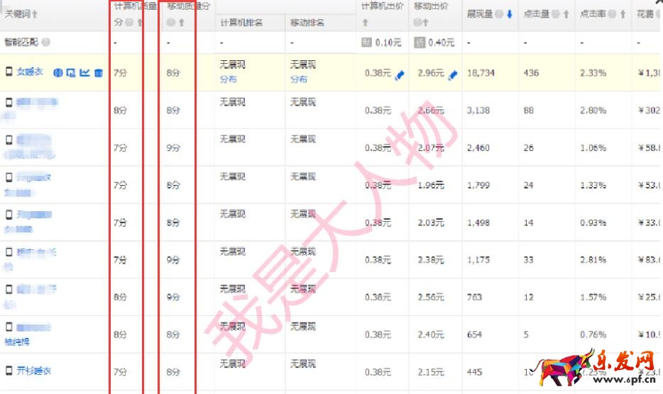 操作之后,現在賬戶,做的就是低價引流,關鍵詞已經篩選出最合適的關鍵詞,不再投放pc端,這個沒啥用的平臺,只操作了無線端的流量。質量得分都穩定在了10分,點擊率也比行業的高很多,權重已經穩定,所以我可以出幾毛錢,就可以拿到不錯的展現,ppc自然就低了。