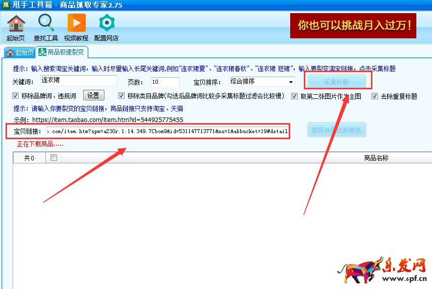 6.輸入要裂變的寶貝鏈接,選擇采集標題。
